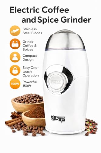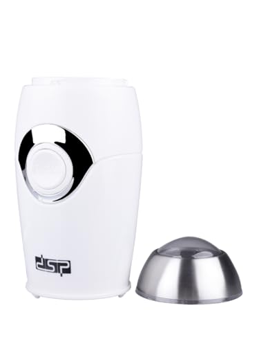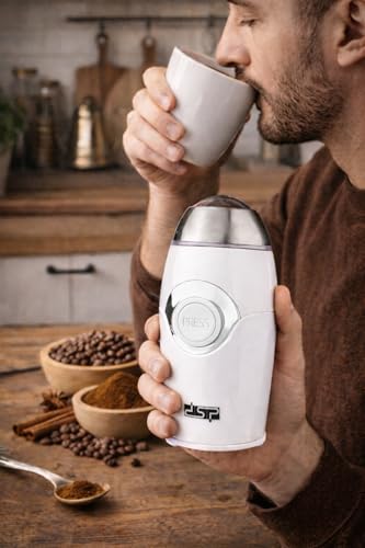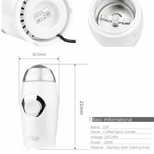 Generic - مطحنة قهوة وتوابل كهربائية بقوة 150 وات، مطحنة بشفرة من الفولاذ المقاوم للصدأ مع محرك نحاس نقي، وتحكم بزر ضغط، بتصميم صغير للحبوب والأعشاب والمكسرات والبذور (لون أبيض)