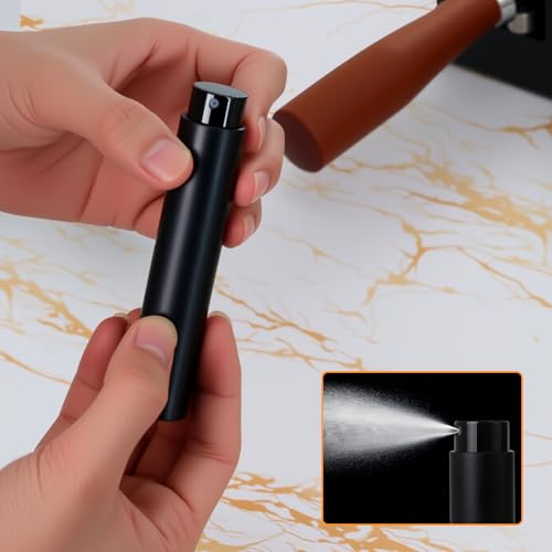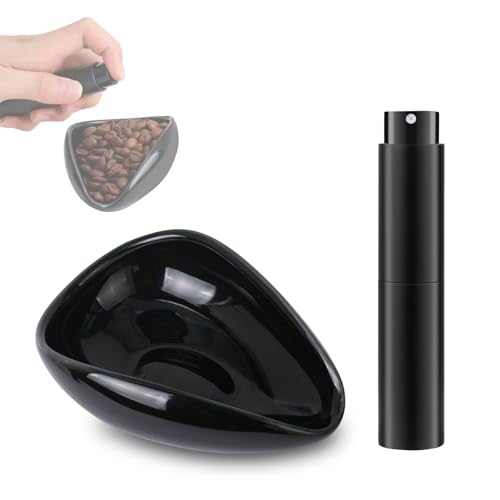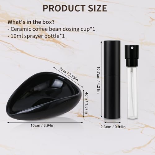 ERAVSOW - مجموعة كوب جرعات حبوب القهوة وزجاجة بخاخ - صينية جرعات فردية من السيراميك، بخاخ تقليل الكهرباء الساكنة (اسود لامع)