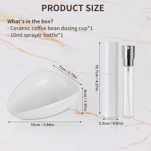 ERAVSOW - مجموعة كوب جرعات حبوب القهوة وزجاجة بخاخ - صينية جرعات فردية من السيراميك، بخاخ تقليل الكهرباء الساكنة (ابيض)