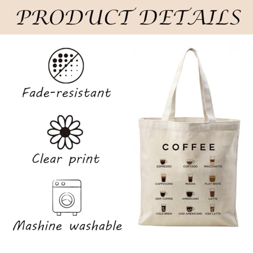 WDSXWH - شنطة يد كبيرة توت من القماش القطني قابلة لاعادة الاستخدام، هدية لمحبي القهوة، شنطة يد قماشية جميلة للنساء، شنطة توت قطنية كاجوال للعمل والدراسة والبقالة والتسوق والشاطئ والاستخدام اليومي