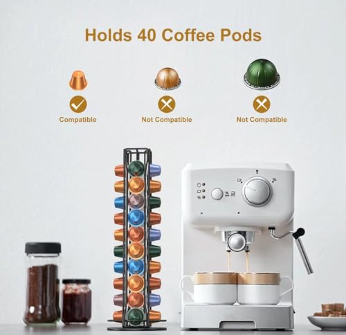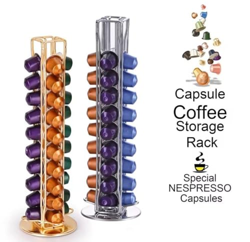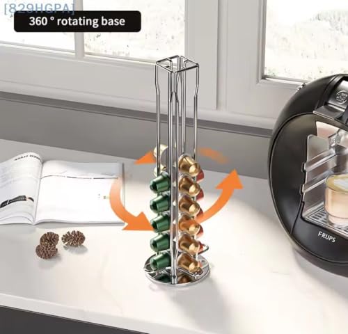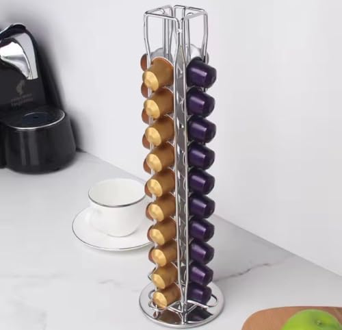 Generic - منظم حامل كبسولات القهوة - منظم متنقل دوار بسعة 40 كبسولة قهوة اسبريسو. حامل تخزين كبسولات القهوة رباعي الجوانب. مصنوع من الستانلس ستيل المقاوم للصدأ.