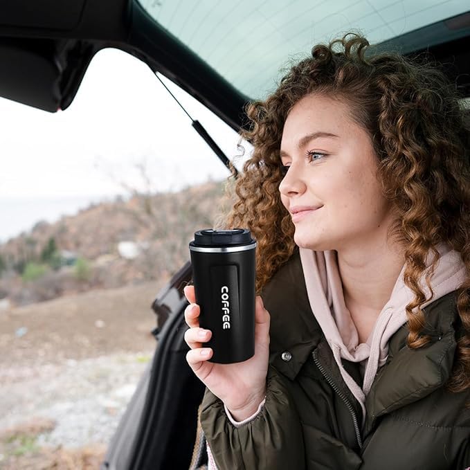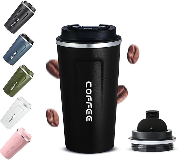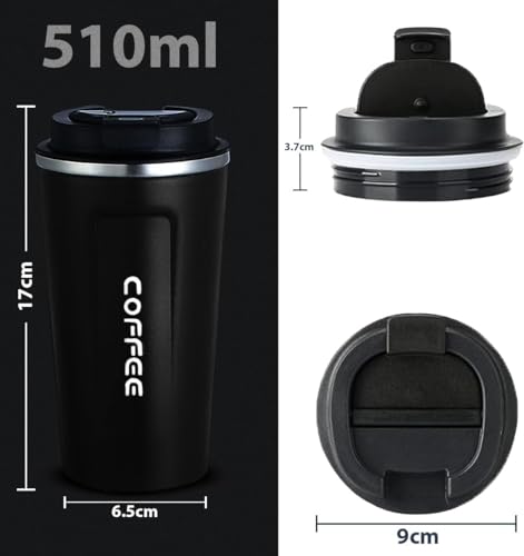 Generic - كوب قهوة، مج حراري معزول طراز MK-128 بجدار مزدوج خالي من مادة بيسفينول أ ومقاوم للانزلاق ومقاوم للتسريب من الفولاذ المقاوم للصدأ يحافظ على المشروبات الساخنة والباردة، (510 مل) (أسود)