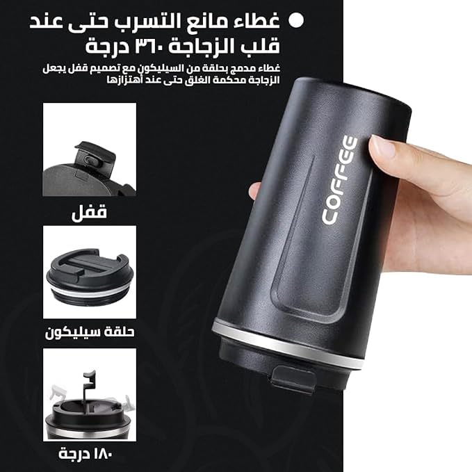 - مانع للتسرب وجاهز للسفر: مزود بغطاء آمن مانع للتسرب، كوب القهوة هذا مثالي لأنماط الحياة أثناء التنقل. ضع الكوب في شنطة أو شنطة ظهر دون القلق بشأن الانسكابات أو التسربات. إنه رفيق أساسي للمسافرين وعشاق الهواء الطلق على حد سواء.