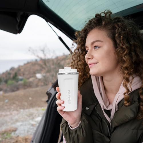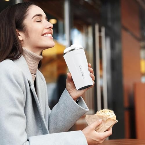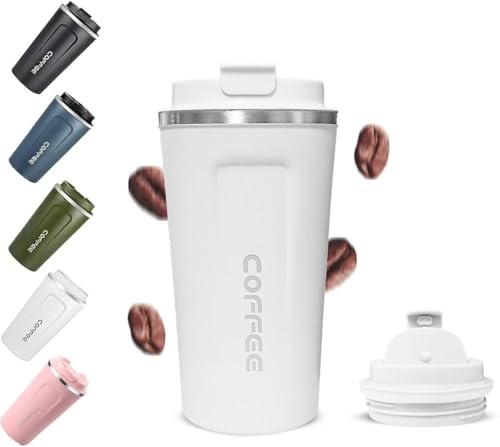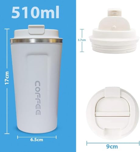 Generic - كوب قهوة - مج سفر حراري من الفولاذ المقاوم للصدأ بجدار مزدوج معزول بتفريغ الهواء مانع للتسرب مع قاعدة غير قابلة للانزلاق خالي من مادة بيسفينول أ للمشروبات الساخنة والباردة، سعة 510 مل (لون أبيض)