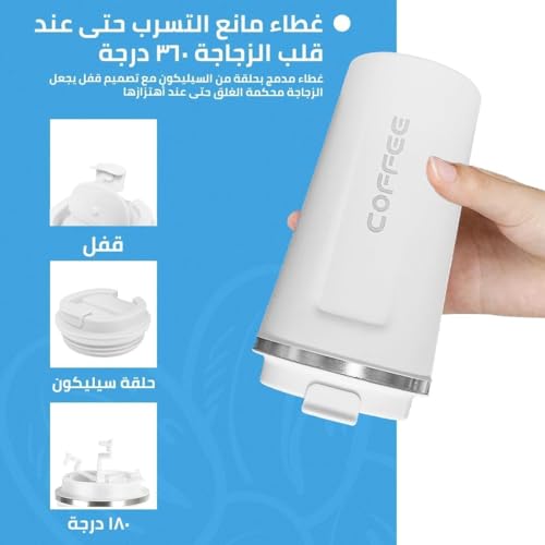 - ضمان عدم التسرب: يمكنك وضعه في شنطة الظهر أو في السيارة دون القلق من أي تنقيط. حيث يحافظ الغطاء المحكم والجزء الخارجي المقاوم للانزلاق على جفاف يديك وثبات مشروبك أثناء التنقل من المترو إلى المكتب.