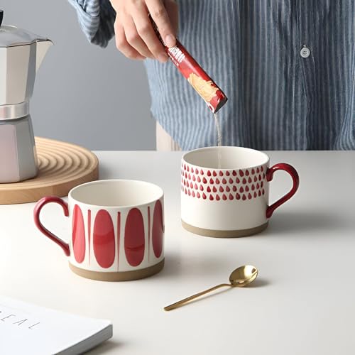 Generic - مجموعة اكواب قهوة من البورسلين بسعة 15 اونصة بتصميمات عصرية متعددة الاشكال مناسبة لركن القهوة، سهلة الاستخدام، بالوان وانماط مختلفة تلبي جميع الاذواق متعددة الاشكال