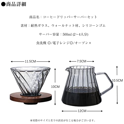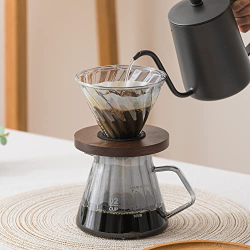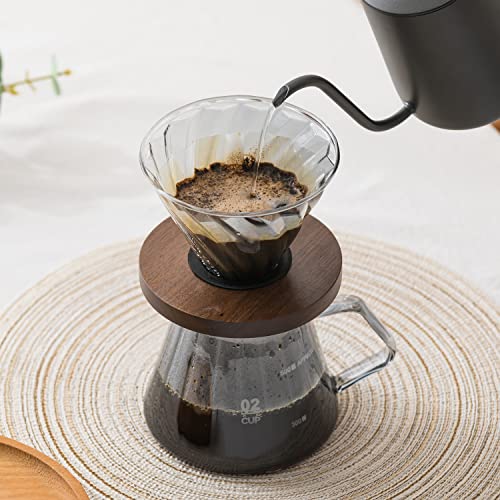L広場 - منقط قهوة، معدات تقطير القهوة، مجموعة تقديم القهوة الانيقة، مجموعة تقديم القهوة، حامل خشبي زجاجي مقاوم للحرارة، مجموعة التنقيط اليدوي بالتنقيط اليدوي، خدمة تنقيط الزهور لـ 2-4 خدمات، 2