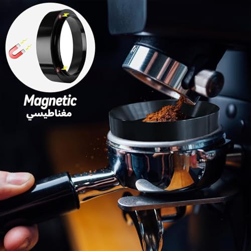 - 【قمع الجرعات وقاعدة مكبس القهوة】حلقة جرعات القهوة مرصعة بـ 4 مغناطيسات متباعدة بالتساوي تثبت قمع الجرعات المغناطيسي بإحكام في مكانه، توقف عن إهدار القهوة وإفساد سطح عملك. يمكن تثبيت بساط جل السيليكون عالي النعومة على أي سطح طاولة في أي زاوية، فهو يساعد على الانزلاق وتحسين ثبات الكبس، وحماية أضرار سطح الطاولة من الفلاتر.