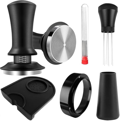 - 【مجموعة مكبس قهوة اسبريسو 51 ملم】تتضمن مجموعة أدوات تحضير الاسبريسو الاحترافية 1 × مكبس قهوة 51 ملم، 1 × أداة دبليو دي تي، 1 × قمع جرعات مغناطيسي، 1 × بساط مكبس قهوة سيليكون، 8 إبر قابلة للاستبدال. مكبس القهوة المصنوع من الستانلس ستيل ليس متينًا فحسب، بل مصمم أيضًا ليكون مقاومًا للصدأ، مما يضمن صحة روتين صنع القهوة.