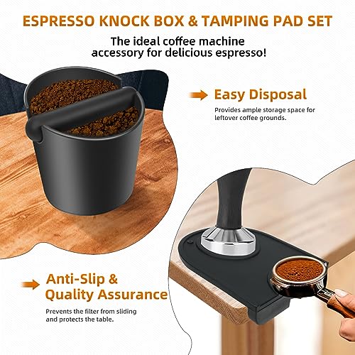 SVNR - صندوق تفريغ مخلفات طحن القهوة والإسبريسو، مقاوم للصدمات ومقاوم للانزلاق، مجموعة ملحقات ماكينة تحضير القهوة مع قضيب ضغط قابل للإزالة، من اس في ان ار، أسود