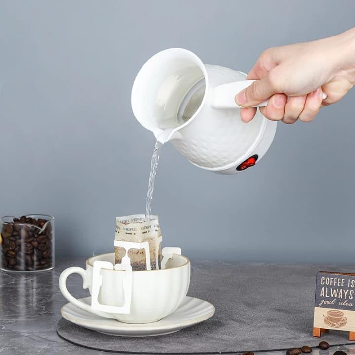 Generic - ماكينة تحضير القهوة الكهربائية 600 واط 0.6 لتر وعاء من الستانلس ستيل مع مقبض معزول حراريا، ماكينة تحضير القهوة بالتنقيط 1-3 اكواب للمنزل والمكتب والسفر (ابيض)