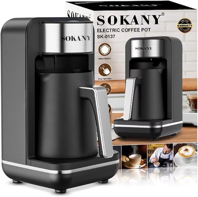 Sokany - ماكينة تحضير القهوة الكهربائية التركية، 250 مل 1-4 اكواب، 550 واط، اغلاق امان تلقائي، فوهة مزدوجة الجوانب، صغيرة محمولة للمنزل والمكتب والسفر، SK-0137