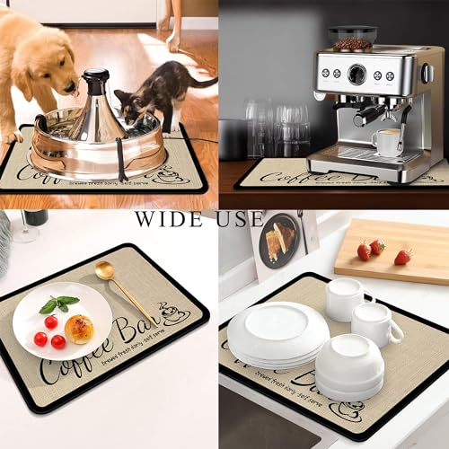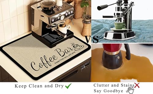 JuSiyley - مفرش لسطح طاولة القهوة مطاطي بسطح ماص للبقع لإخفاء البقع عن سطح الطاولة، اكسسوارات القهوة تناسب ماكينة تحضير القهوة والاسبريسو، مفرش تجفيف الأطباق لطاولة المطبخ (لون دي -بيج، مقاس 30 × 40 سم)