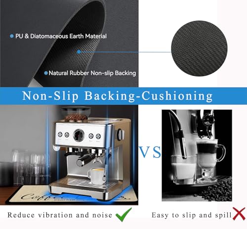 - 【مفرش متين لماكينة تحضير الاسبريسو اكسسوار لإخفاء البقع】: مفرش القهوة هذا مصنوع من مادة البولي يوريثين والتراب الدياتومي يمتاز بمقاوم شديدة للبقع. مادة خاصة يمكنها إخفاء بقع القهوة والحليب وأي بقع فوضوية أخرى من على سطح الطاولة. لا يحتاج المفرش إلى مسحه بشكل متكرر. لا تقلق بشأن بقع الماء على السطح. مفرش ماكينة تحضير القهوة متين للغاية ويمكن إعادة استخدامه عدة مرات.