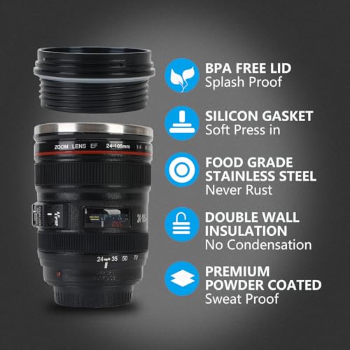 • 🎁هدية رائعة🎁 كوب قهوة مثالي لمحبي القهوة والمصورين ★ متعدد الأغراض★: رائع للقهوة والشاي. المناسبات: المنزل، المكتب، المشي لمسافات طويلة، التخييم، السفر، الرياضة في الهواء الطلق.