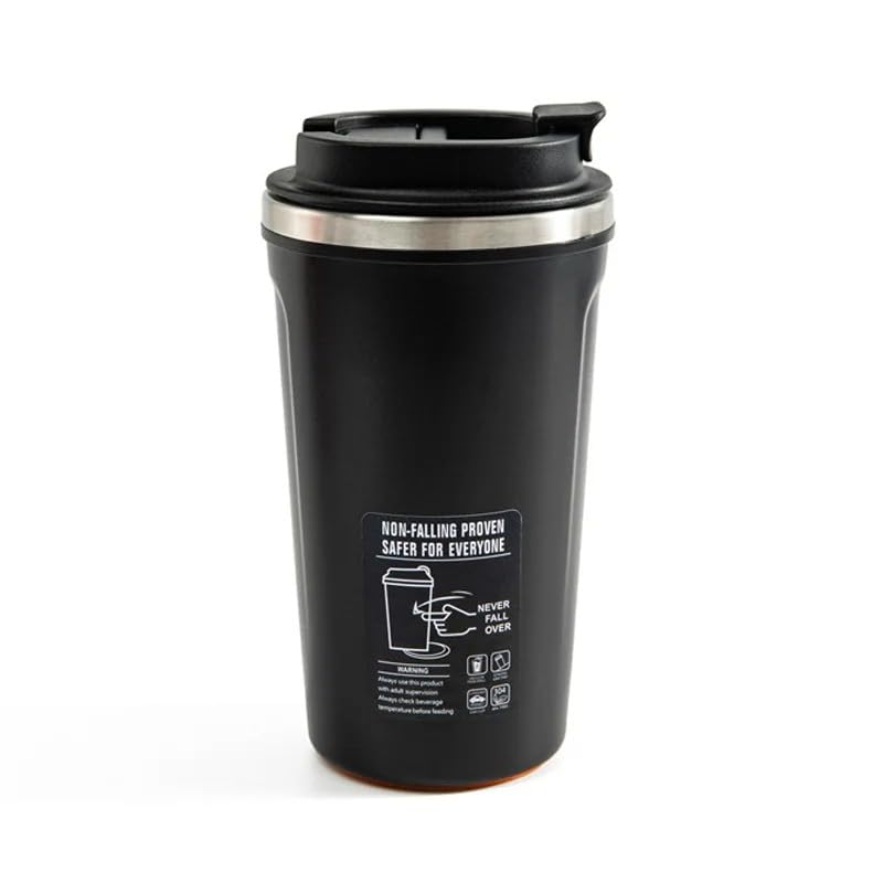 Generic - مج قهوة من الفولاذ المقاوم للصدأ - بقاعدة لاصقة وغطاء مانع للتسرب، مج سفر حراري للمشروبات الساخنة والباردة للمكتب والمنزل والسيارة والسفر - لون أسود - بسعة 520 مل