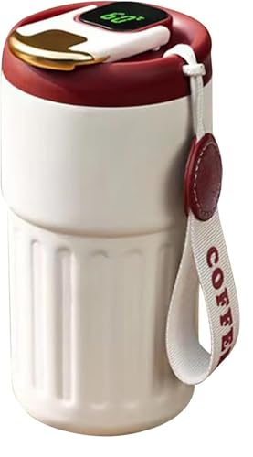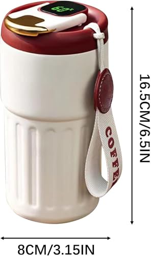 Generic - مج للقهوة حراري للسفر بشاشة رقمية مصنوع من الفولاذ المقاوم للصدأ 316 وعازل للحرارة ومقاوم للتسرب ومزود بغطاء مناسب للقهوة، 420 مل (بيج بغطاء أحمر)