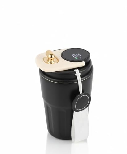 Spaceshoop - مج قهوة للسفر بشاشة رقمية سعة 500 مل من الستانلس ستيل 316 معزول بتفريغ الهواء ومضاد للتسرب مع غطاء للقهوة (اسود، 500 ملليلتر)