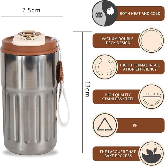 - 2- هيكل فاخر: مصنوع من الستانلس ستيل 304 عالي الجودة لمتانة فائقة ومقاومة للصدأ، مما يحافظ على المشروبات طازجة دون روائح غير مرغوب فيها.