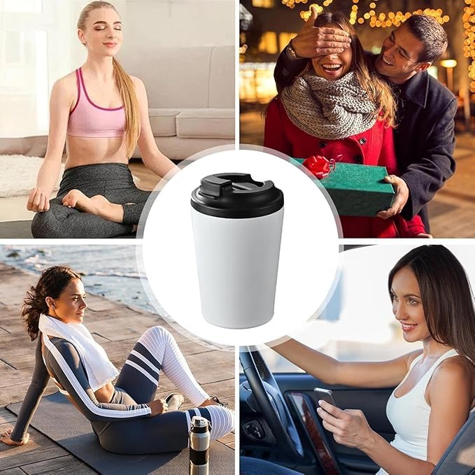 Generic - مج للقهوة من الفولاذ المقاوم للصدأ مع غطاء مانع للتسرب، مج معزول بجدار مزدوج 304 للمشروبات الساخنة والباردة، مج قهوة محمول قابل لإعادة الاستخدام للسفر والمكتب، سعة 350 مل، (لون أبيض)