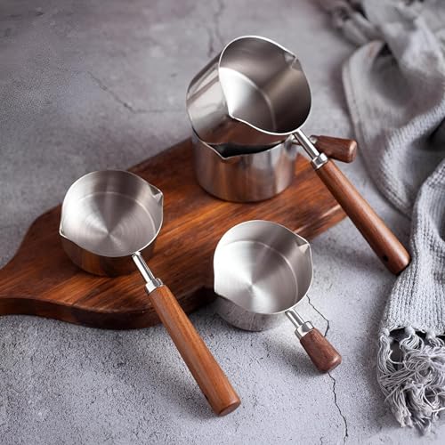 Generic - قدر طبخ من ستوبازا، مصنوع من الستانلس ستيل مع مقبض خشبي، لون ستانلس ستيل غير مطلي، سعة 300 مل. يتضمن وعاء زيت وقدور متعددة. يتميز بصنابير صب مزدوجة وتسخين متساوٍ ومتوافق مع الحث