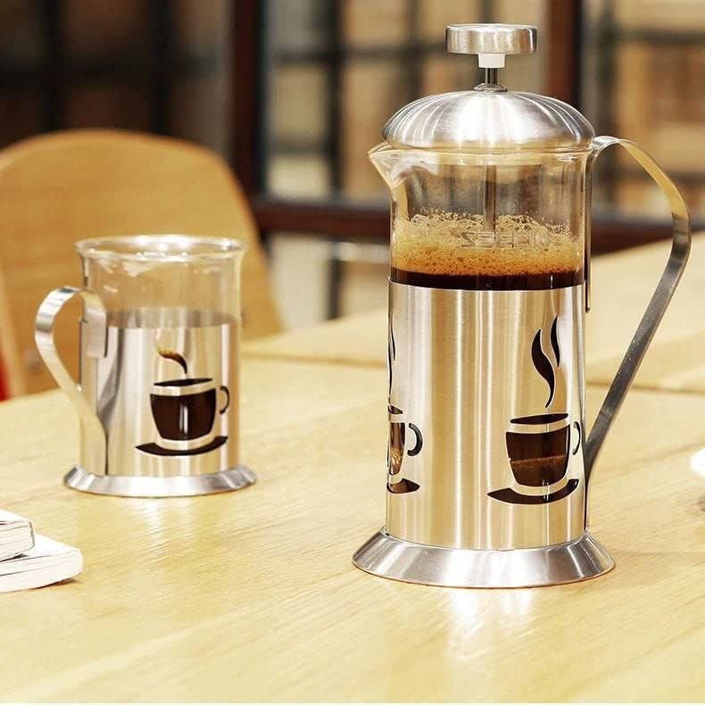 - كوفي بريس استانلس ستيل عيار 304 هيعملك احلى وش للقهوه و النسكافيه تقدر تعمل بيه القهوة نفسها وكمان اللبن علشان يعمل فوم هاتطلع قهوة او كابتشينو و علشان تصفي الاعشاب بكل سهولة مصنوع من البايركس العالي الجودة مع مصفاة من الاستانلس