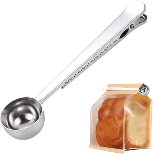 Generic - مغرفة قهوة مع مشبك حقيبة 10 غرام/15 مل، ملعقة قياس القهوة من الستانلس ستيل للقهوة المطحونة والفاصوليا، ملعقة قياس القهوة (7 انش، فضي)