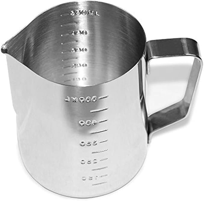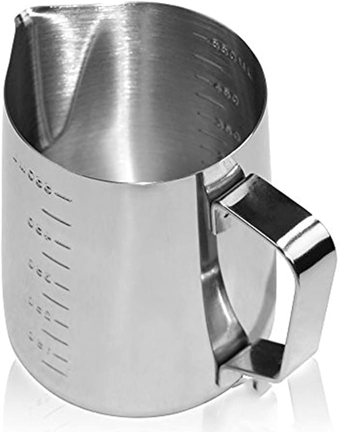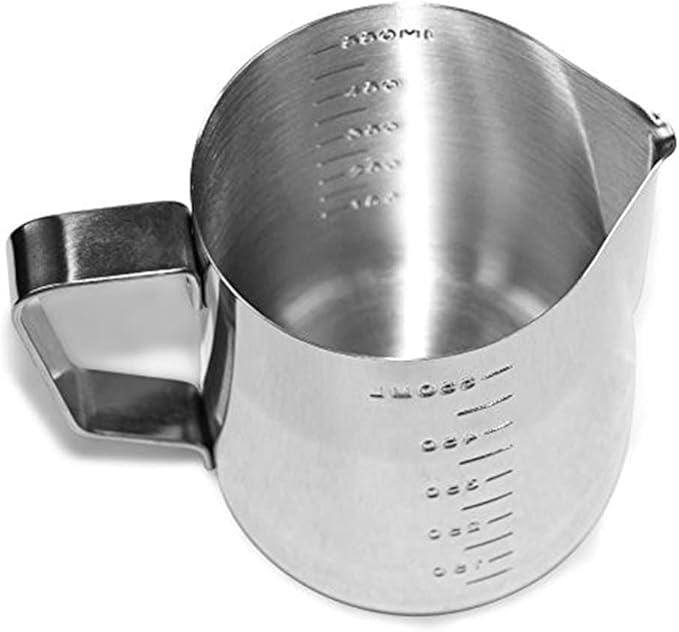 - استخدام مثالي لأباريق الحليب: يمكن استخدام إبريق رغوة الحليب بطرق مختلفة: رغوة أو بخار الحليب لللاتيه، قياس السوائل، تقديم الحليب أو الكريمة. مثالية لصنع رغوة الحليب أو تبخير الحليب للاسبريسو أو الكابتشينو أو الشوكولاتة الساخنة. كن صانع القهوة الخاص بك في منزلك ومكتبك.