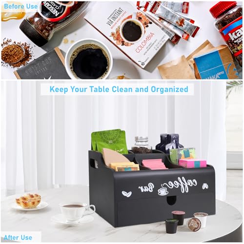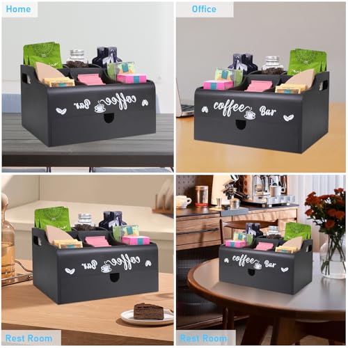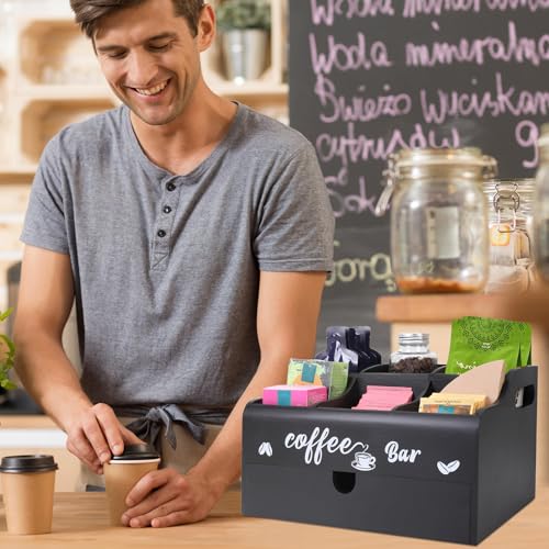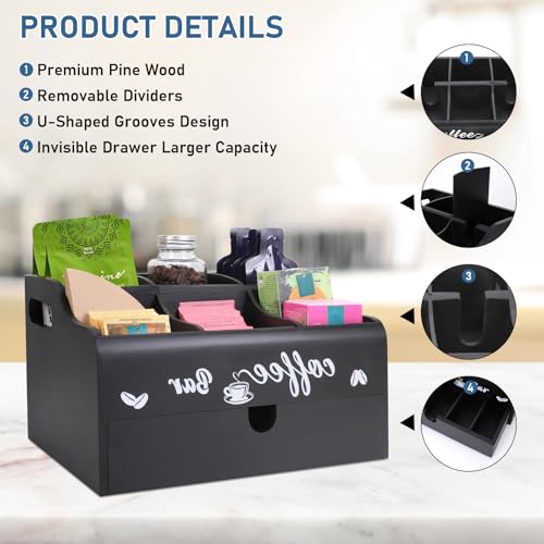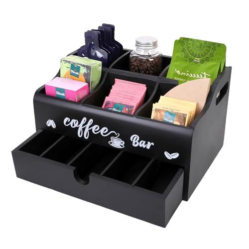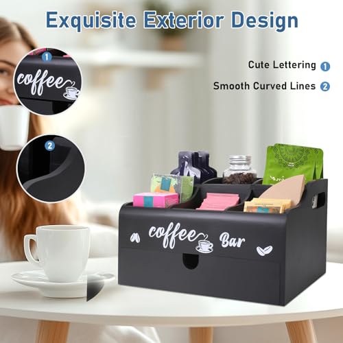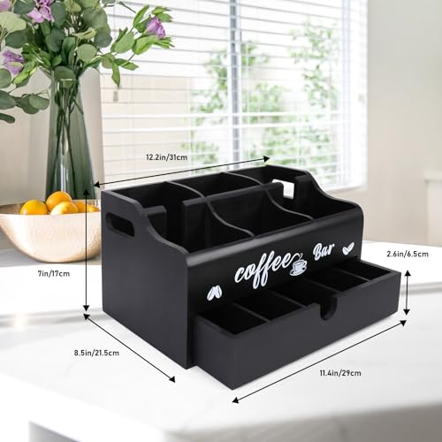 WATUNID - منظم قهوة للطاولات من واتونيد من الخشب الأنيق بدرج تخزين وسلة قابلة للفصل لحفظ كبسولات القهوة بمساحة منظمة لتخزين السكر