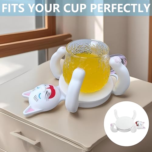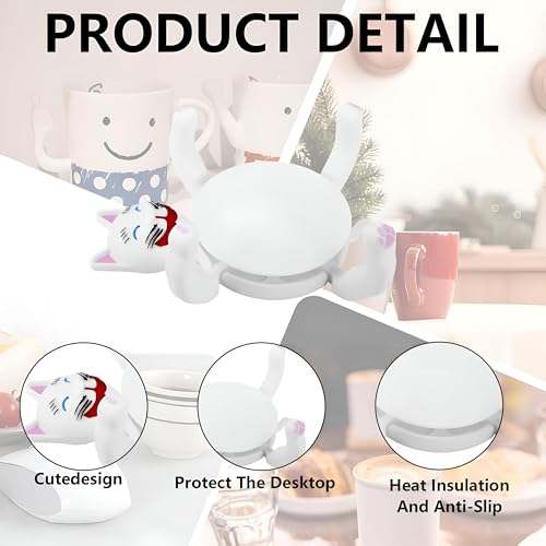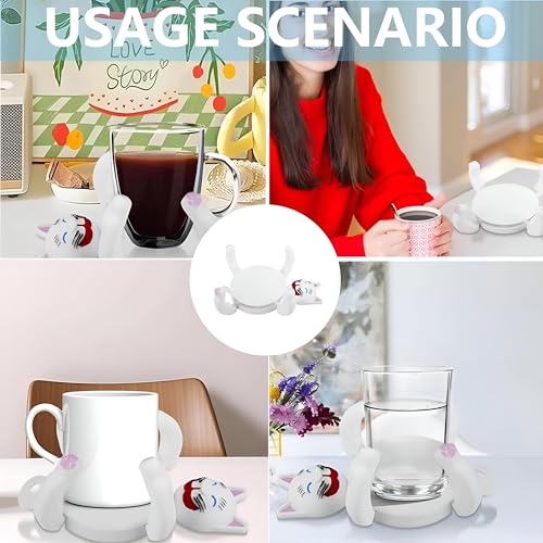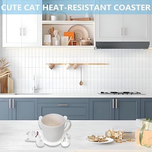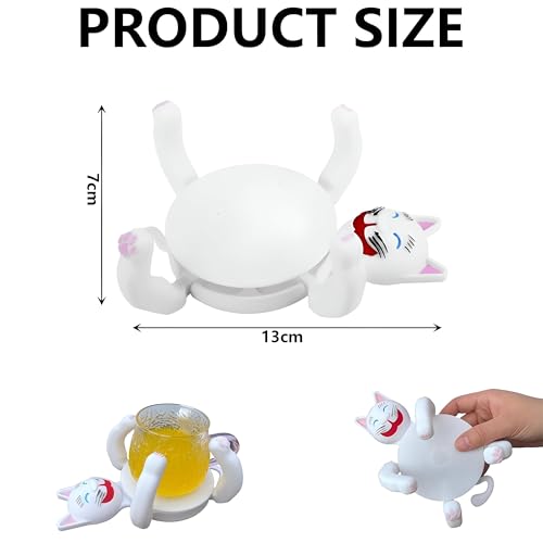 Generic - ديكور طاولة القهوة - قاعدة اكواب مبهجة ثلاثية الابعاد على شكل قطة تعمل كحامل مشروبات واقي وزخرفة لطيفة، مصممة للمنازل الصديقة للحيوانات الاليفة واعدادات المشروبات الانيقة. (2)