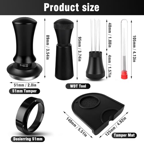 Baoweihua - مكبس قهوة بقطر 51 ملم، مجموعة مكبس متكاملة تشمل أداة دبليو دي تي، حلقة مكيال بقطر 51 ملم، قاعدة مكبس إسبريسو مموجة من الفولاذ المقاوم للصدأ مع خاصية تنظيم الضغط، ملحقات باريستا فاخرة