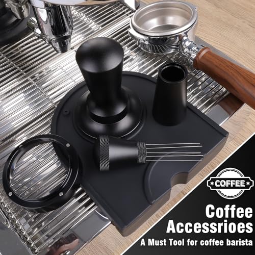 - ملحقات عالية الجودة للمحترفين: تجنب الفوضى وتناثر القهوة مع حلقة مكيال القهوة الدقيقة بمقاس 51 ملم المصممة بعناية. تحمي قاعدة المكبس السوداء المصنوعة من السيليكون سطح العمل لديك، بالإضافة إلى حماية حواف حامل الفلتر. مثالية للباريستا المحترفين وعشاق القهوة أصحاب الذوق الرفيع.
