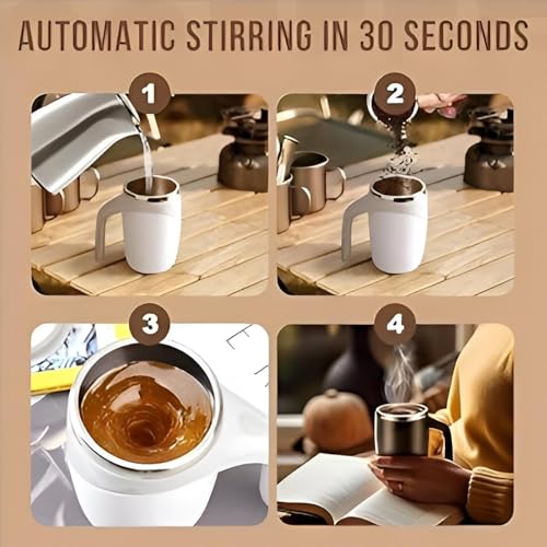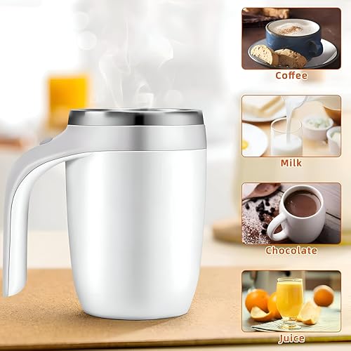 Generic - القهوة والشاي - خلاط محمول فعال 380 مل مع شحن USB، قبضة مريحة لمزج القهوة والشاي بشكل مريح، وخيارات الالوان ابيض او بني. (لون ابيض)