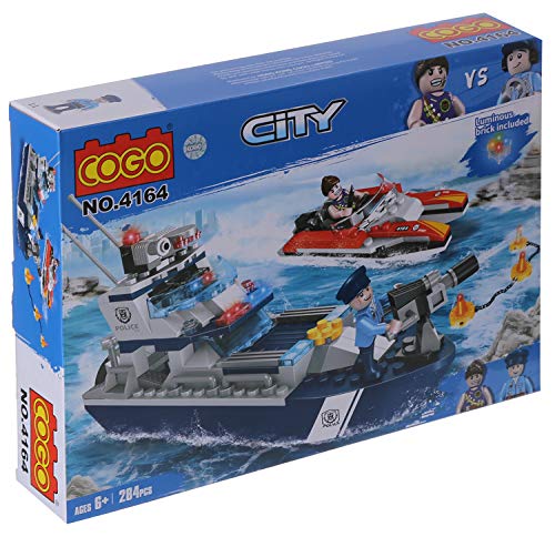 Cogo - لعبة تركيب مكعبات شكل قوارب شرطة من كوجو 4164 - 284 قطعة، بلاستيك