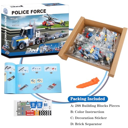 - ✨【مجموعة بناء شرطة 3 في 1】توفر مجموعة شرطة المدينة هذه للأطفال 3 خيارات للبناء واللعب لساعات من عمليات إنقاذ الشرطة مع مركبات رائعة مختلفة. تتضمن فاصل الطوب للفك وتعليمات مفصلة (استخدام اللغة العربية غير مؤكد). يمكن للأطفال بناء شاحنة نقل لطائرة هليكوبتر للشرطة، ثم إعادة البناء لإنشاء مشهد لمطاردة السيارات حول مطاردة الشرطة للص أو التحول إلى حاملة سيارات للشرطة.