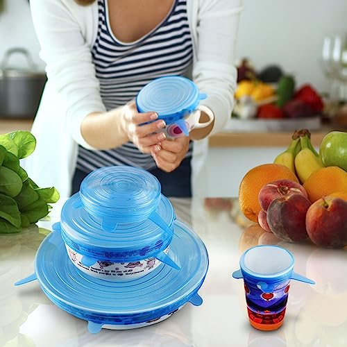 Cohentbliss - مجموعة أغطية سيليكون من 12 قطعة، غطاء مرن بتوافق واسع النطاق، غطاء سيليكون قابل لإعادة الاستخدام، غطاء سيليكون للحفاظ على الأطعمة طازجة للأطباق العميقة والأواني والعلب والأكواب من كوهنتبليس