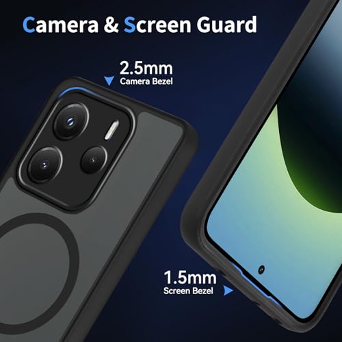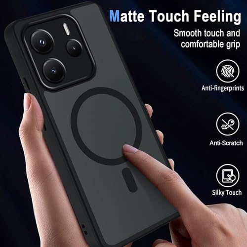 Coiwxmoi - جراب مغناطيسي من كويوكسموي لموبايل شاومي ريدمي نوت 14، جراب شفاف غير لامع مضاد للصدمات من السيليكون والبولي يوريثين الحراري ومضاد للخدش من البولي كربونات لموبايل شاومي ريدمي نوت 14 6.67 بوصة، اسود
