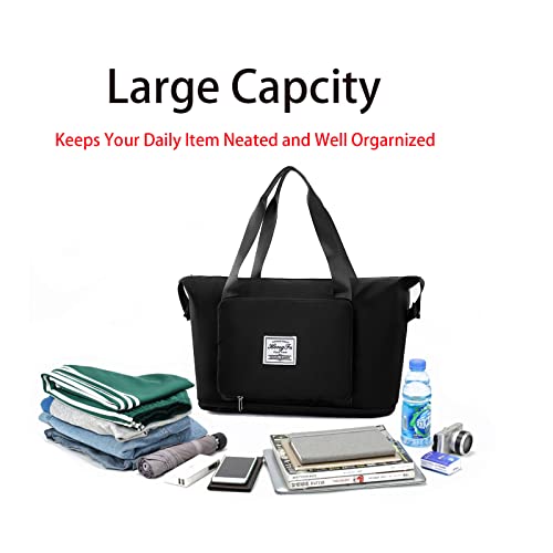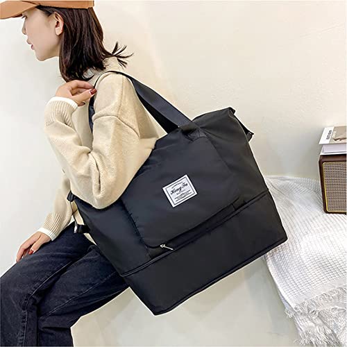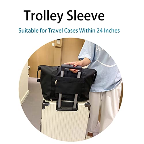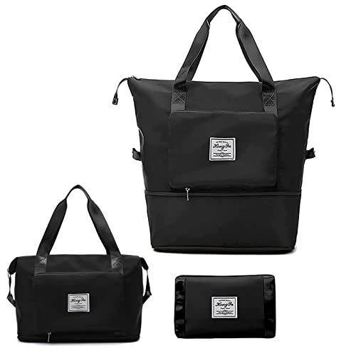 Cokosoxo - شنطة دفل للسفر قابلة للطي للنساء والرجال، شنطة يد توت كبيرة رياضية قابلة للتوسيع مع جيب ترولي كبيرة السعة ومناسبة للحمل على الطائرة والمبيت ليلة واحدة, أسود، قماش