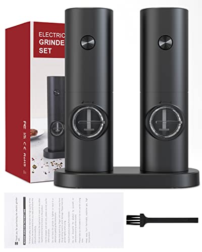 COKUNST - مجموعة مطحنة الفلفل والملح الكهربائية من كوكونست، تعمل بالبطارية قابلة للتعديل بـ 5 مستويات خشونة مع حامل، طحن تلقائي مع اضاءة ليد للشواء والمطعم والمطبخ