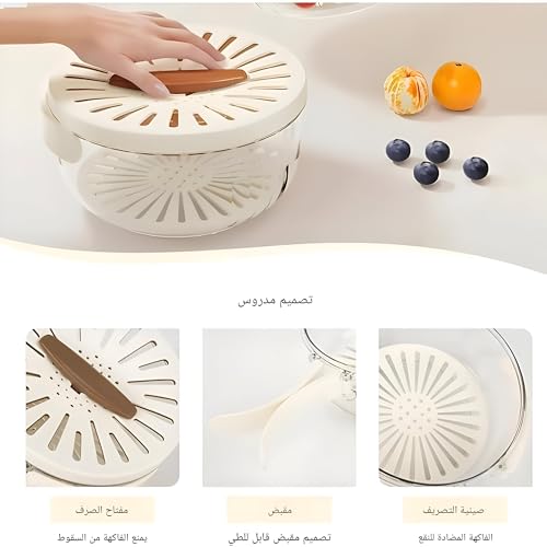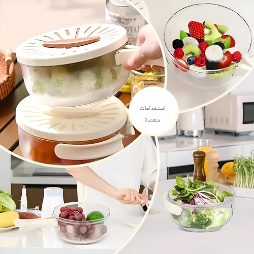 Generic - بولة مطبخ 3 في 1 بتصميم مبتكر ومتعدد الوظائف لغسل الفواكه والخضروات، تأتي مع صفاية مدمجة ومقبض قابل للطي لسهولة التخزين، 1 قطعة