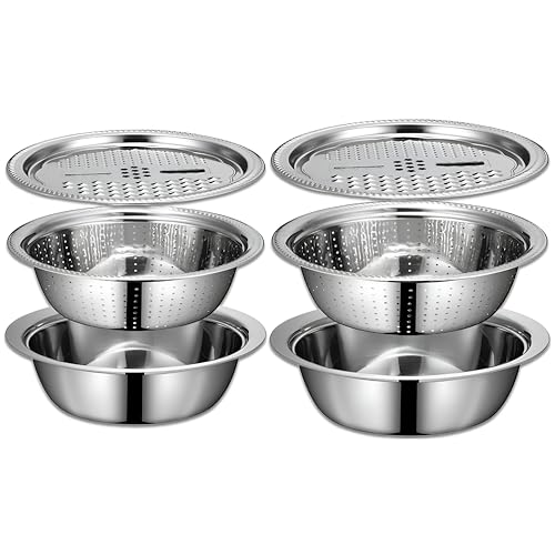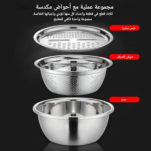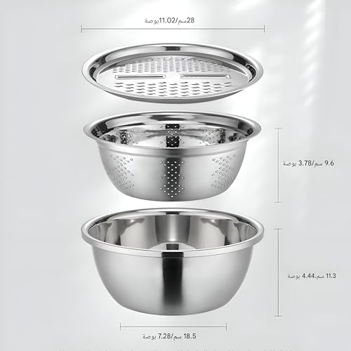 Generic - مجموعة مصفاة ووعاء خلط وسلة تصريف 3 في 1 لسهولة تقطيع الخضروات وتصفيتها في مطبخك - (قطعتين)
