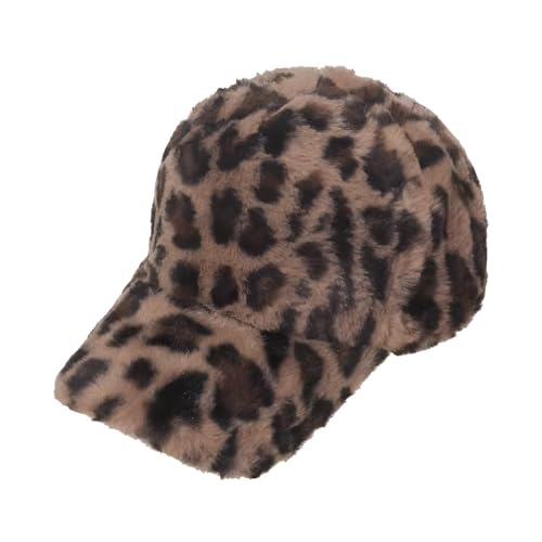 Generic - غطاء راس للطقس البارد - قبعة بيسبول مطبوعة من الفرو الصناعي بنقشة جلد الفهد، بطانة صوف دافئة للنساء والفتيات في مواسم الشتاء