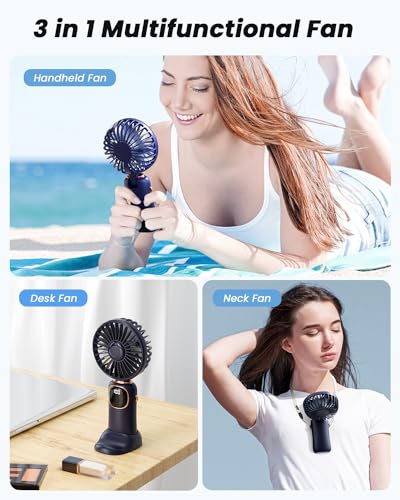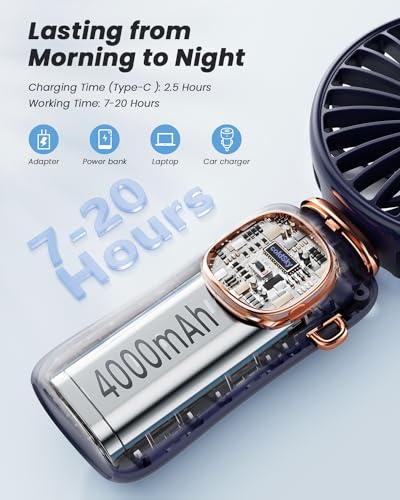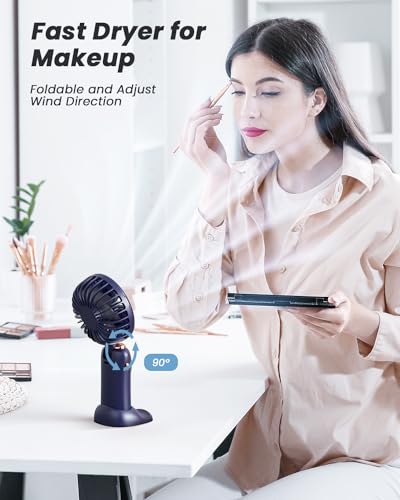 coldSky - مروحة محمولة باليد من كولدسكاي، تعمل ببطارية 4000 مللي امبير في الساعة مع شاشة ليد، مروحة صغيرة شخصية 3 في 1 قابلة للطي بزاوية 90 درجة مع قاعدة، مروحة مكياج بـ 5 سرعات للنساء والبنات