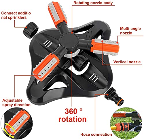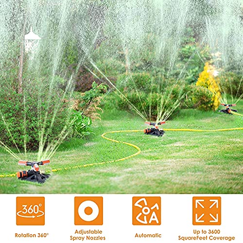 - رشاش عشب قوي ومتعدد الاستخدامات - امنح الفناء أقصى قدر من الرش المتساوي للمياه مع ضغط مياه 80 باوند لكل انش مربع ودوران 360 درجة ومسافة رش 32.8 قدم.