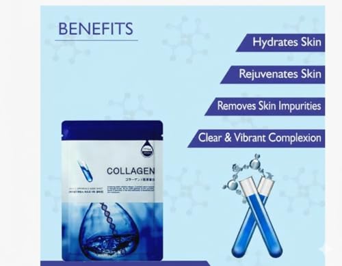 Generic - قناع وجه بالكولاجين مع حمض الهيالورونيك وزيت فيتامين اي للعناية بالبشرة، يرطب وينعم ويفتح لون البشرة ويحارب علامات الشيخوخة، لجميع أنواع البشرة، الدهنية والجافة، والمعرضة لحب الشباب والحساسة - 1 قطعة