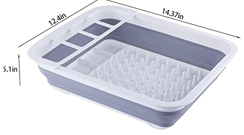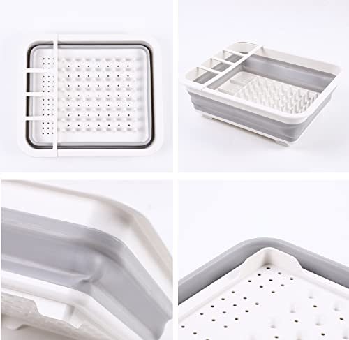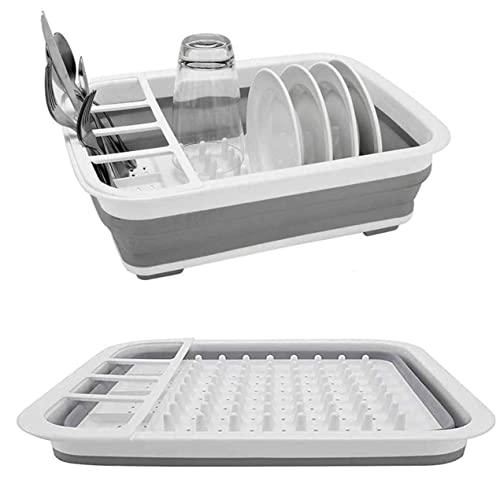 GINFH - رف تجفيف اطباق قابل للطي من جينف محمول تخزين للاطباق منظم ار في والتخييم وملحقات المطبخ للمخيمات والسفر والمقطورات والانشطة الخارجية ابيض ورمادي بلاستيك وسيليكون بولي بروبيلين + مطاط حراري مرن