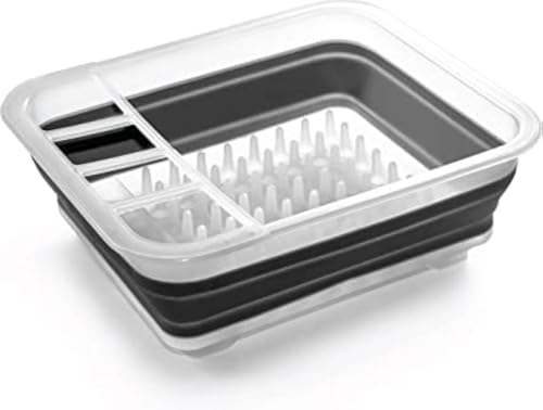 Generic - حامل لتجفيف الاطباق وادوات المائدة قابل للطي بصفاية مناسب للمطبخ لتوفير المساحة، مصنفر، رمادي، أكريلونيتريل بوتادين ستايرين