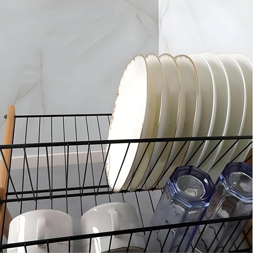 - يتميز رف تجفيف الأطباق هذا بهيكل هجين من الخشب الطبيعي وسلك ستيل متين، مما يوفر الدفء الجمالي والسلامة الهيكلية القوية التي تقاوم الصدأ والتآكل، مما يضمن موثوقية طويلة الأمد في بيئات المطبخ ذات الازدحام الشديد.