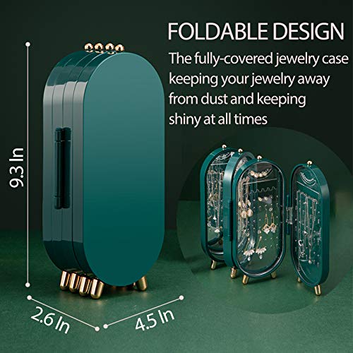 Lejesth - صندوق منظم للمجوهرات للنساء والفتيات، بتصميم صغير محمول قابل للطي مع مرآة وحامل للحلقان والسلاسل، أخضر ، بلاستيك، من ليجيست