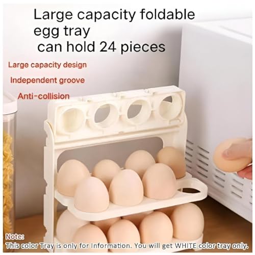Generic - حامل بيض قابل للطي، صينية تخزين مصنوعة من البلاستيكي ومكونة من 3 طبقات مع 24 فتحة لتنظيم البيض بأمان، مناسبة للاستخدام المنزلي والفنادق والتجاري